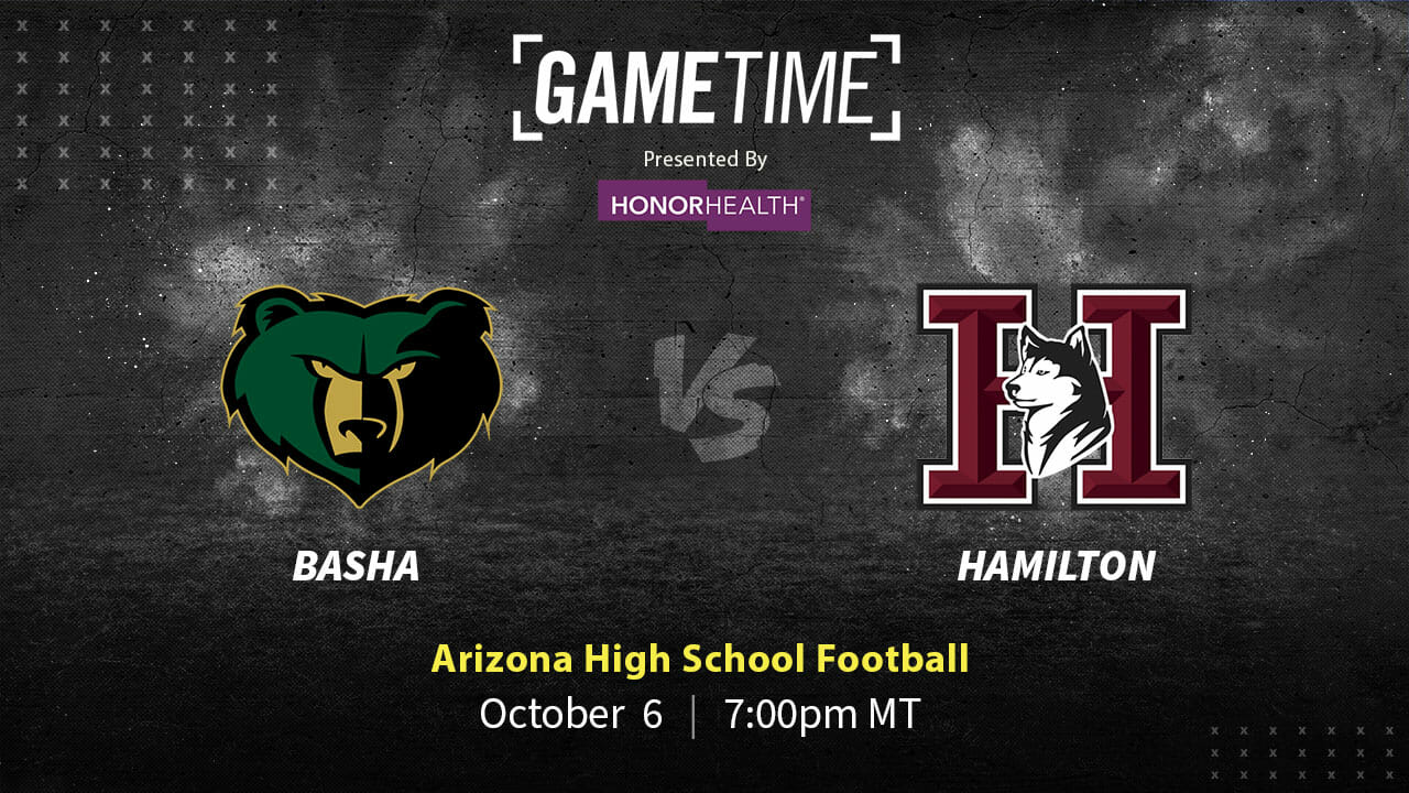 GameTime High School Football: Basha Bears vs Hamilton Huskies this Friday, October 6th. Watch the best high school football matchups on Cox channels, Cox Contour TV, or enjoy the free stream on watch.yurview.com. Presented by… Honor Health: Honor Above All.