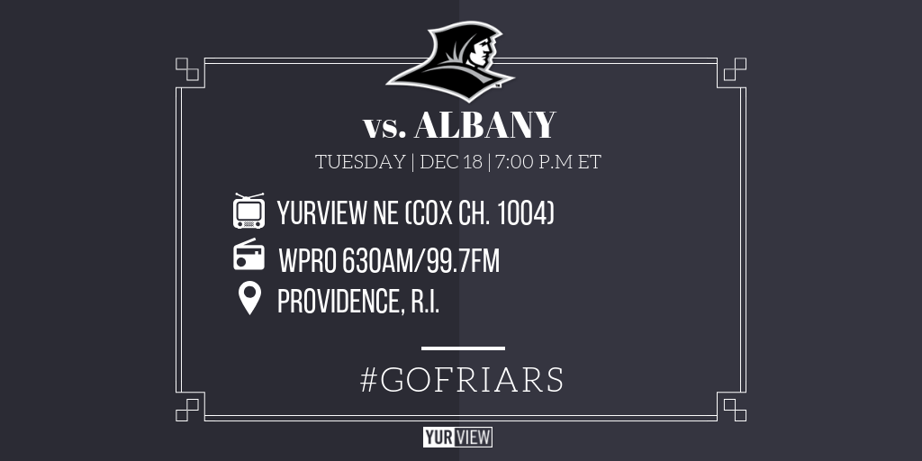 The Friars face off against Albany, Tuesday, December 18th at 7:00pm EST on YurView New England, channels 4 & 1004.