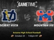 The Desert Vista Thunder (3-4) match up with the Mesa Mountain View Toros (6-1) in our Arizona high school football featured GameTime matchup this week – Friday, Oct. 29 at 7:00 pm MT/9:00 pm CT.