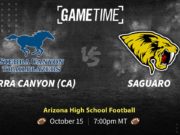 The Sierra Canyon Trailblazers (4-3) of Chatsworth, CA are traveling to Arizona to take on the Saguaro Sabercats (4-1) in our Arizona high school football featured GameTime matchup this week – Friday, Oct. 15 at 7:00 pm MT/9:00 pm CT.