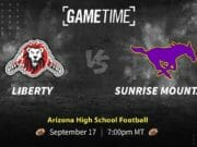 The Liberty Lions and the Sunrise Mountain Mustangs are matching up in a rivalry game in our Arizona high school football featured GameTime matchup this week – Friday, Sept. 17 at 7:00 pm MT/9:00 pm CT.