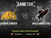 The Queen Creek Bulldogs (3-0) and the Williams Field Blackhawks (3-0) are matching up for a battle of unbeatens in our Arizona high school football featured GameTime matchup this week – Friday, Oct. 1 at 7:00 pm MT/9:00 pm CT.