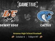 The Desert Edge Scorpions (4-1) and the Cactus Cobras (5-0) are matching up in our Arizona high school football featured GameTime matchup this week – Friday, Oct. 8 at 7:00 pm MT/9:00 pm CT.