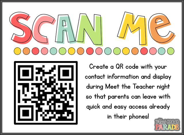 Parents need to stay informed about their child and connected to the teacher, so make sharing your contact information easy. Before parent teacher open house, create a QR code with all your info so parents can easily pull it up all on their smartphones. Not only will parents feel secure having the information, but this one step DIY allows you to focus on introducing yourself to parents and not having to recite phones numbers or email addresses all day. A win, win situation!