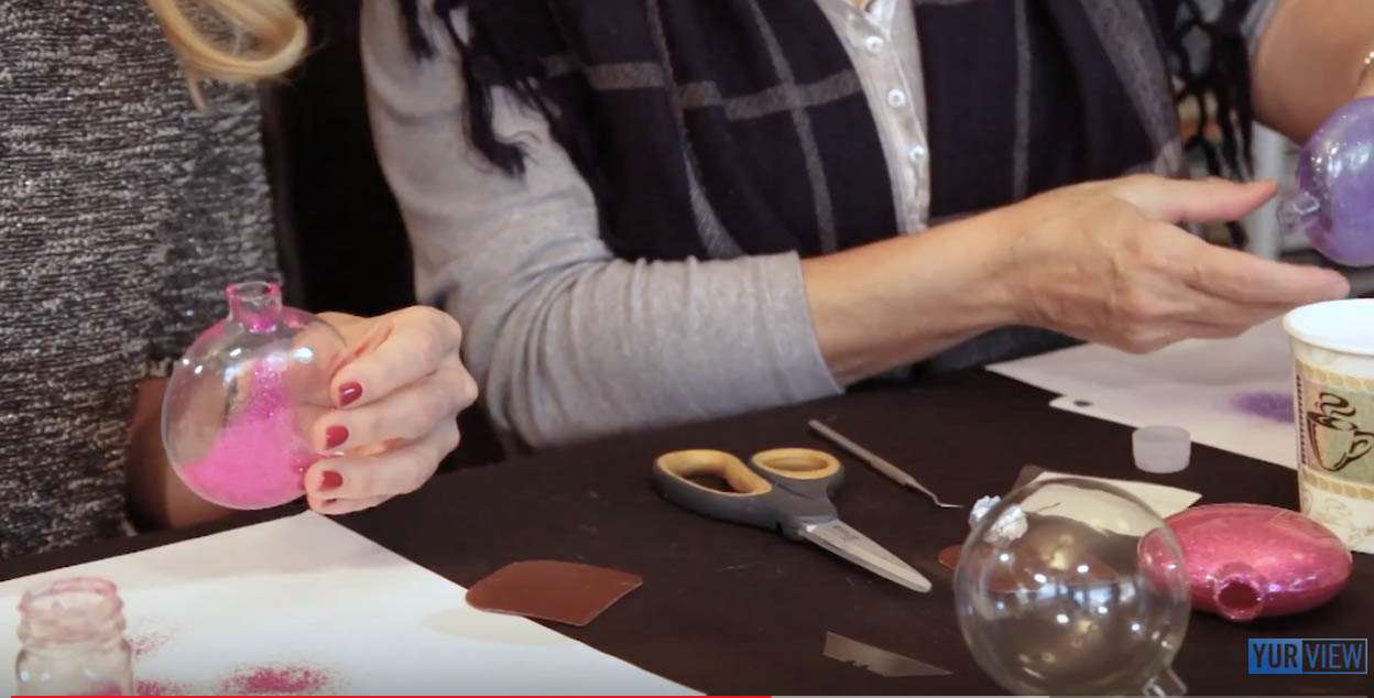 1. Fill ornament with adhesive (floor polish works nicely) and swish is around so it fills the entire inside of the ornament