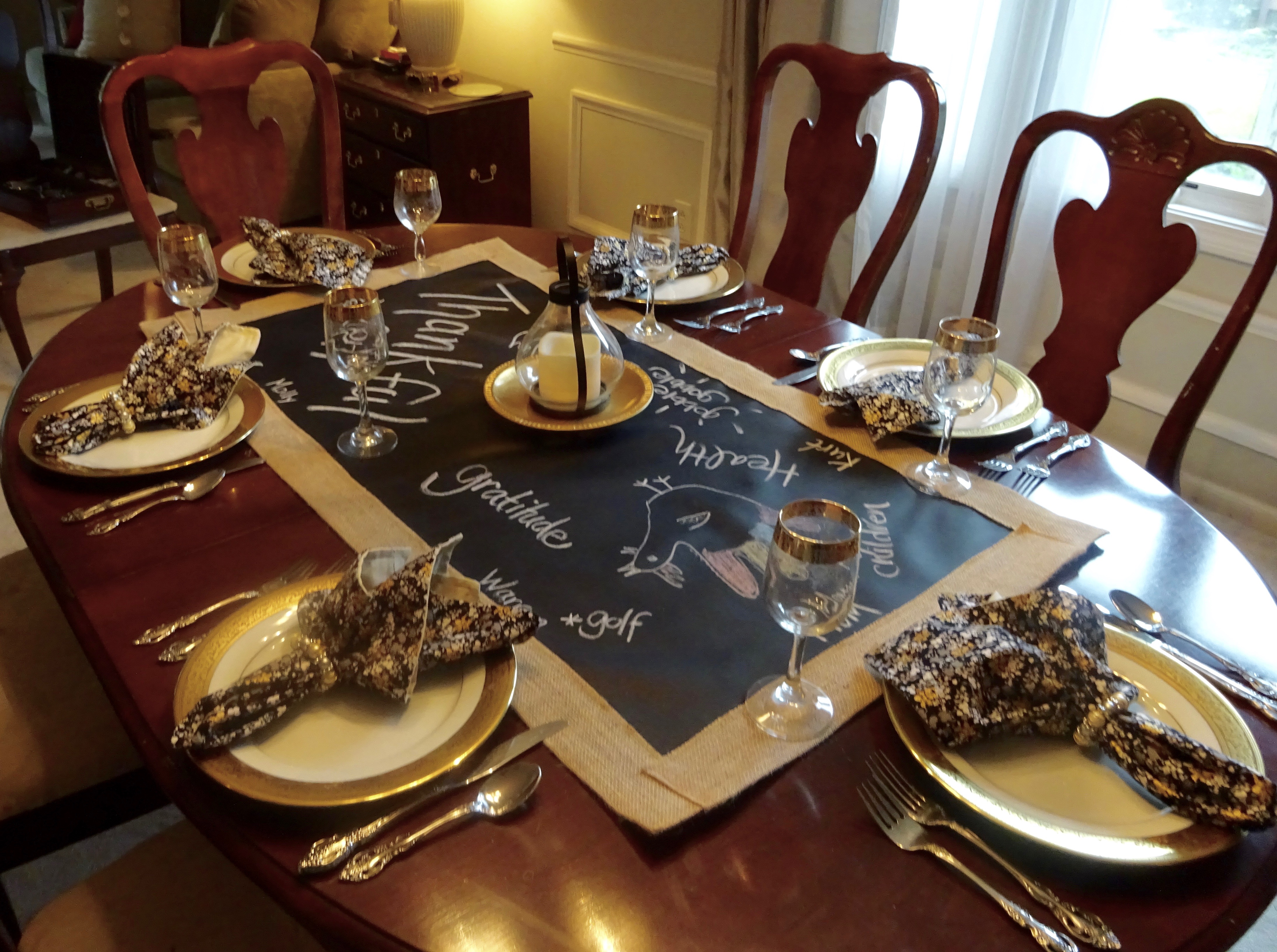 Thanksgiving is a time for family, a reminder to be grateful, a challenge to run the Turkey Trot, a quiet moment to a nap after a big meal, and the official kick off to holiday decorating season. So with that in mind, Thanksgiving gives us a great opportunity to decorate the dining room table in any style. And if your dishware is simple, your tablescape doesn’t have to be; just using one white plate per table setting it’s fun and easy to accomplish any theme you can imagine.