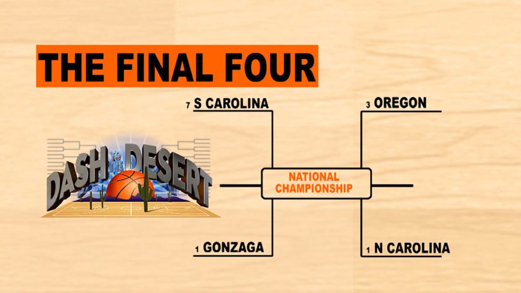 After 64 games in two weeks, the NCAA Tournament is down to its Final 4 – South Carolina, Oregon, Gonzaga and North Carolina. These are the teams that survived four games and completed their Dash to the Desert, specifically their dash to the Arizona desert. South Carolina will play Gonzaga followed by Oregon vs. UNC on Saturday night at University of Phoenix Stadium in Glendale.