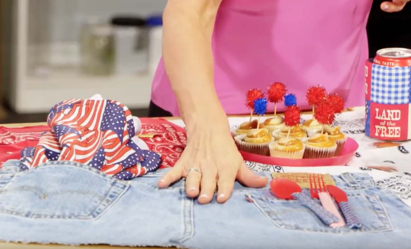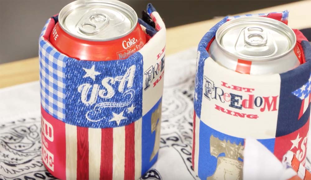 Koozies are always welcome on a hot day to keep your beverages cool. So cover a piece of insulated liner material with patriotic fabric and glue or sew on some velcro or you can secure the edges together with safety pins.