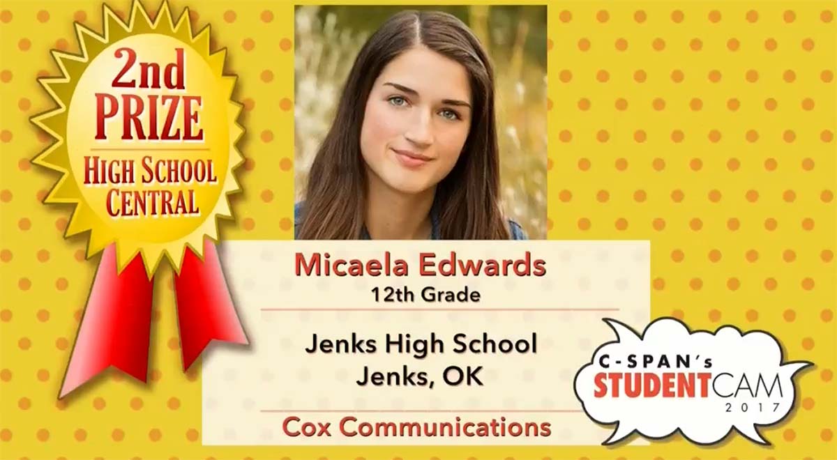 Local students from Jenks and Broken Arrow have earned top prizes in C-SPAN’s exciting and engaging video competition called Student Cam. One look at the production value of these short documentaries would make any viewer assume this is college level material. Impressively, this is not the case. Since 2006, C-SPAN has partnered with local cable affiliates nationwide to provide novice filmmakers at the middle school and high school levels with the opportunity to produce high-quality, professional stories on public policy issues.