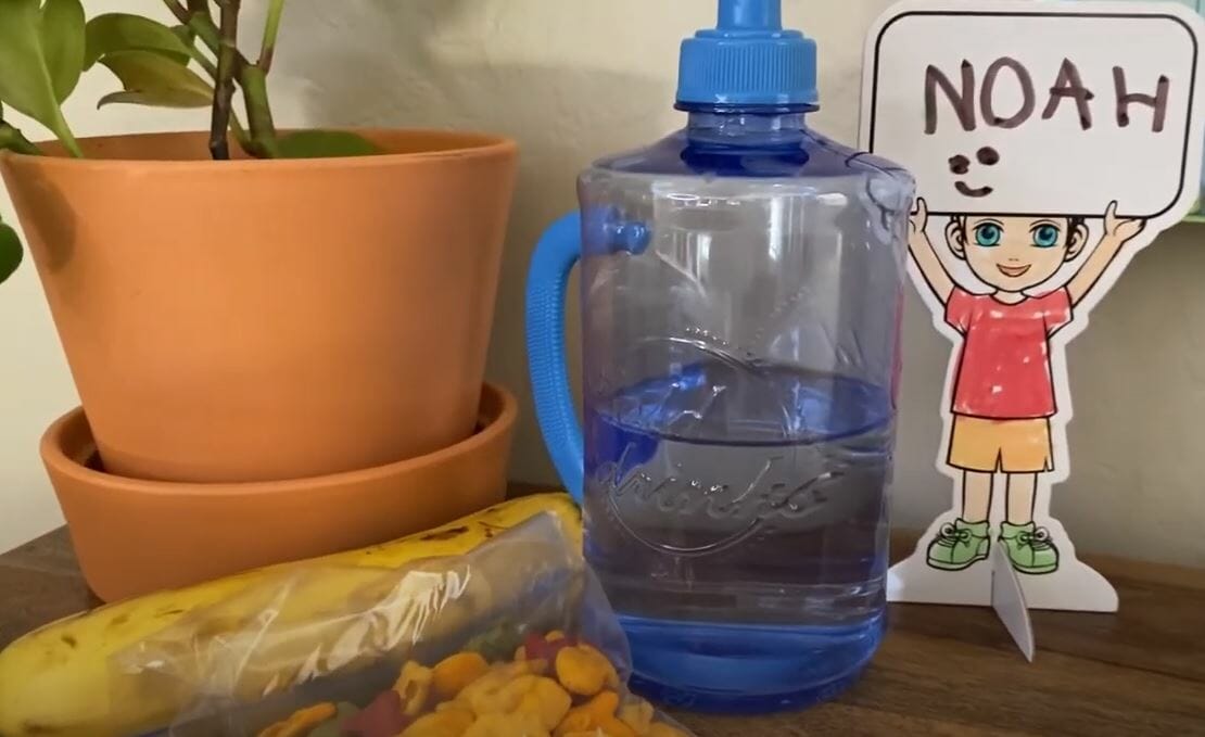 Hydration is imperative, so always keep a water bottle on the desk along with snacks. Any quick, easy and nutritious snacks your child can grab from the pantry or fridge is a big win.