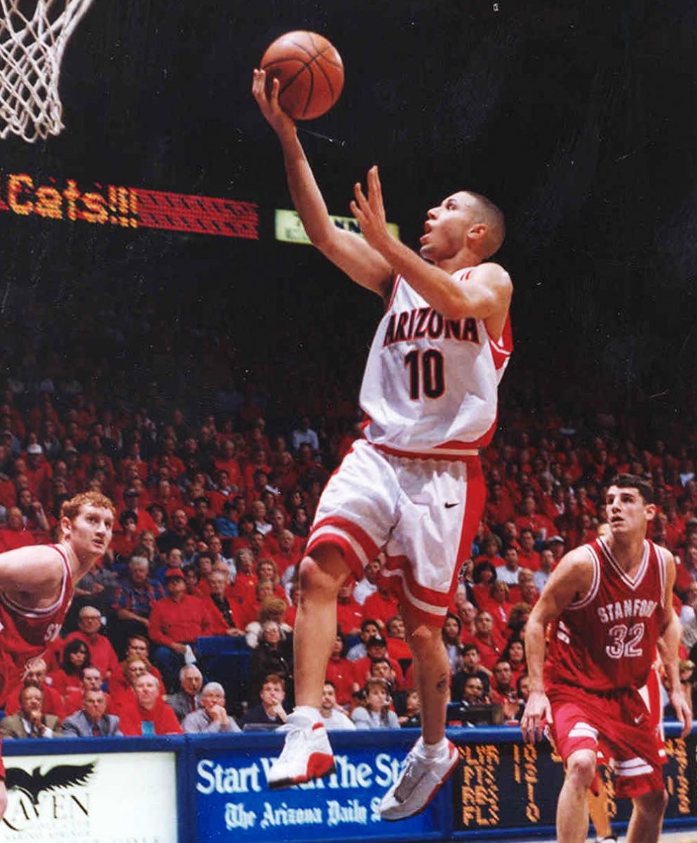 After capping off a storied high school basketball career with a state championship in 1996 at Shadow Mountain High School in Phoenix, Mike Bibby hit the road a couple of hours south to Tucson to continue his career at the University of Arizona. “I wanted to play basketball at the University of Arizona. First of all, it was close to home without being home. Just the basketball program that U of A had, Coach Olson, Coach Evans that recruited me from there. I thought I fit in pretty good going there, and playing on a high caliber team for a hall of fame coach.” Bibby said.