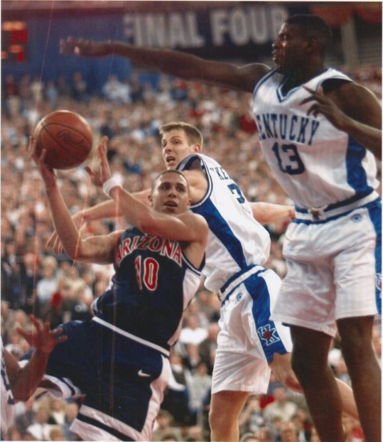 Awaiting the Wildcats in the semifinals was a rematch with #1 seed North Carolina, whom Arizona defeated earlier in the season. U of A shook off a sluggish start, trailing the Tar Heels 15-4, and stormed back to claim a 66-58 victory. “The feeling after we beat the Tar Heels was one more to go.” Bibby said. That win sent Arizona to the title game where they would face another #1 seed in Kentucky, the defending national champions. The blue blood program from the Southeastern Conference featured 5 players that would play in the NBA. “The national championship game going out there, I remember we felt like we belonged. Nobody expected us to be there, let alone win it, but we got hot at the right time. Coach Olson let us play to our strengths and we just played basketball.” Bibby said.