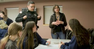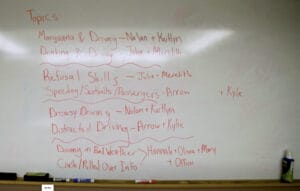 One tool in the group’s arsenal is a mock car crash. Burrillville High Senior Kaitlyn Fleming explains that the idea is to simulate a crash “to show [the students] the real impact that driving under the influence using alcohol or other substances could have on your life.”