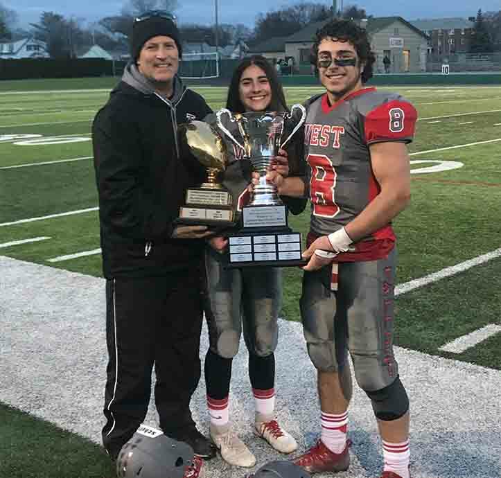 (L-R) Steve, Madison and Cam Alves after 2018 Cranston West Thanksgiving Day Game Victory – Photo Courtesy Alves Family