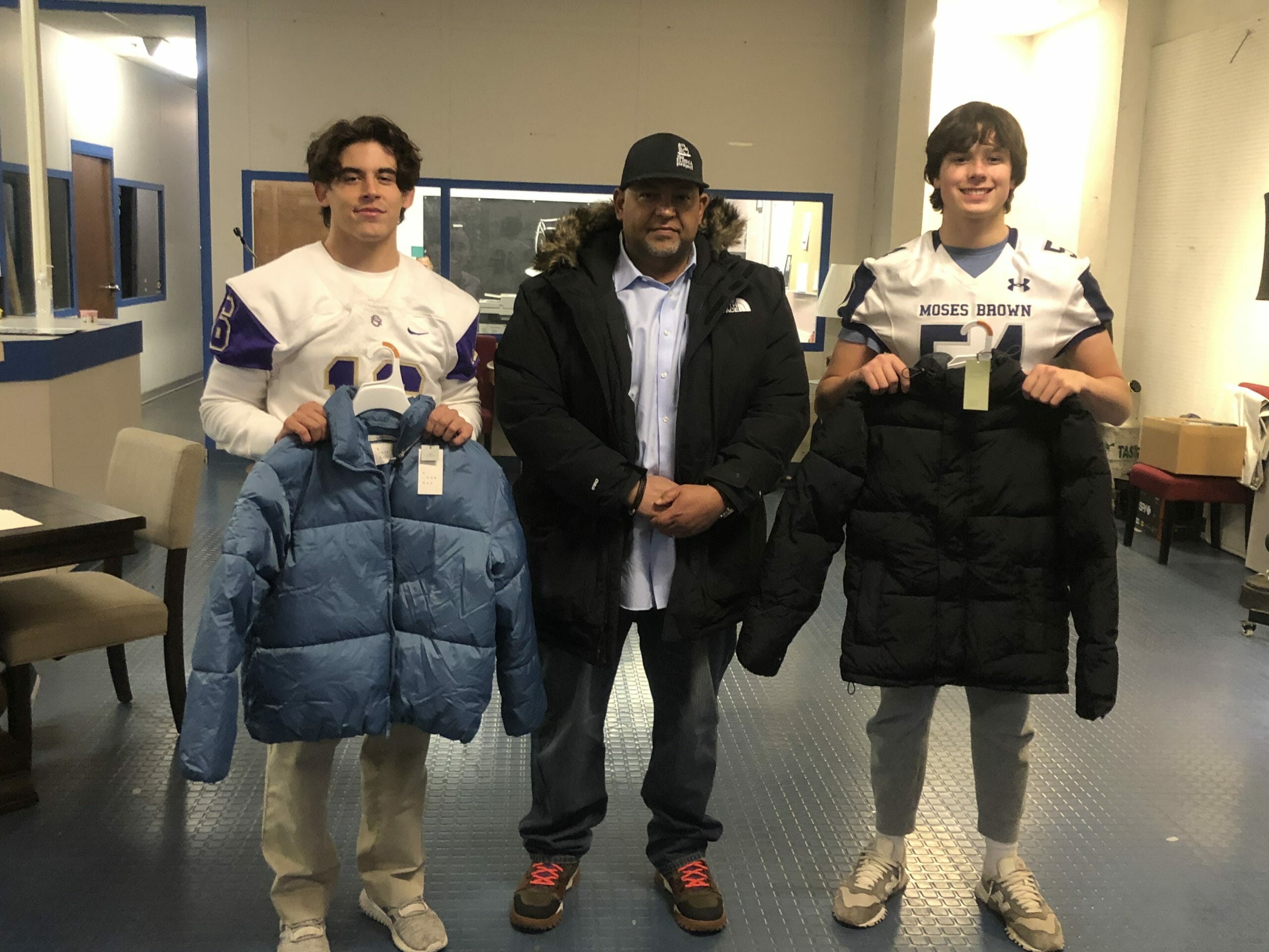McAuliffe and DeMacedo couldn’t have been more opposite in the manner they took charge. At St. Raphael, the message was spread through flyers strategically displayed throughout the school. With Moses Brown, McAuliffe reminded his teammates through their group chat with one parent of a football player using Facebook to bring additional attention to the coat drive.