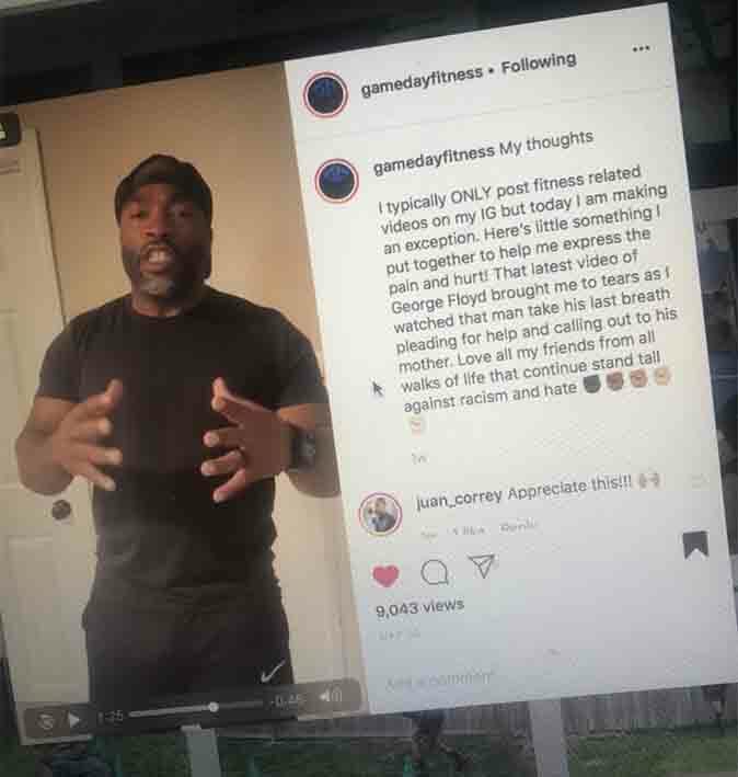 The response has been overwhelming. His fierce, thoughtful outcry for change has been viewed more than 30,000 times on his social media platforms. The post on his Facebook page alone has been viewed by 20,000, shared 500 times and received 400 comments. Combined with a similar post on the Game Day Fitness Instagram page, his untitled spoken word has been viewed 30k times over just two weeks.