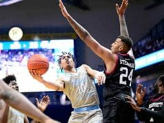 I’d like to see a Thomas, Sheppard, El-Amin back court trio get meaningful run. This doesn’t mean this lineup can or should be on the floor 19.7, 15 or even 10 percent of the time. But I’d love to see it more. Despite Thomas’s trifecta of three-point makes last night, he is not a consistent perimeter threat. He’s a vision-led distributor with much promise. He’ll make a freshman play occasionally because that’s what freshmen do. At this point, an eye towards his development and the program’s future should begin carrying more weight. Put him out there in spurts with a couple of veteran shooters on the flank and see what transpires.
