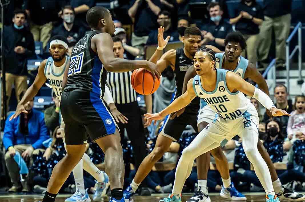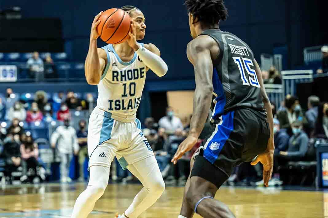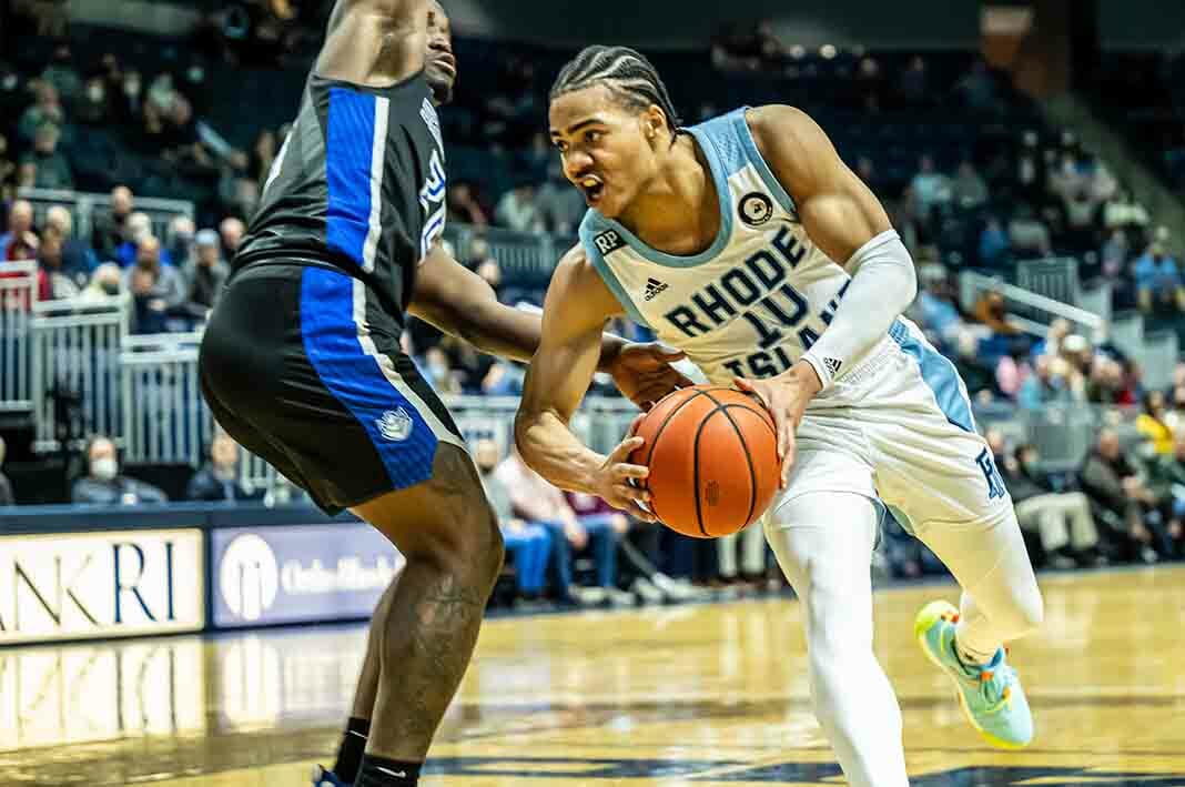 A key returning member of the University of Rhode Island program is sophomore guard Ishmael Leggett. A 6-foot-2, 180 pound combo guard, Leggett is a gritty, team-first talent. He’s a capable ballhandler, shooter, paint touch threat, willing defender, and opportunistic rebounder who outperforms his measurables in mixing it up on the interior.