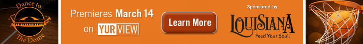 Dance to the Dome premieres Monday, March 14th at 8:30 pm on YurView Louisiana (Cox channel 4). New shows debut every week until the championship game on Monday, April 4th.