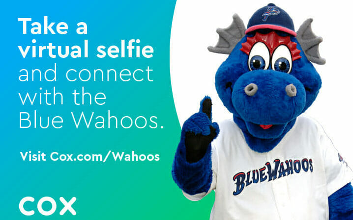 Want to get a picture with Kazoo? Go to cox.com/wahoos and download your photo. Then show off your team spirit by sharing it with friends and family on social media. It’s all part of our Blue Wahoo meet and greet, sponsored by Cox.