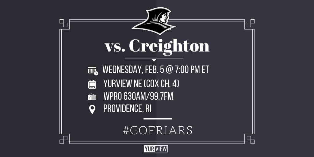 CATCH BIG EAST ACTION ON YURVIEW WHEN THE FRIARS TAKE ON CREIGHTON ON WEDNESDAY, FEBRUARY 5 AT 7PM ET. YURVIEW IS COX CHANNEL 4 IN RHODE ISLAND.
