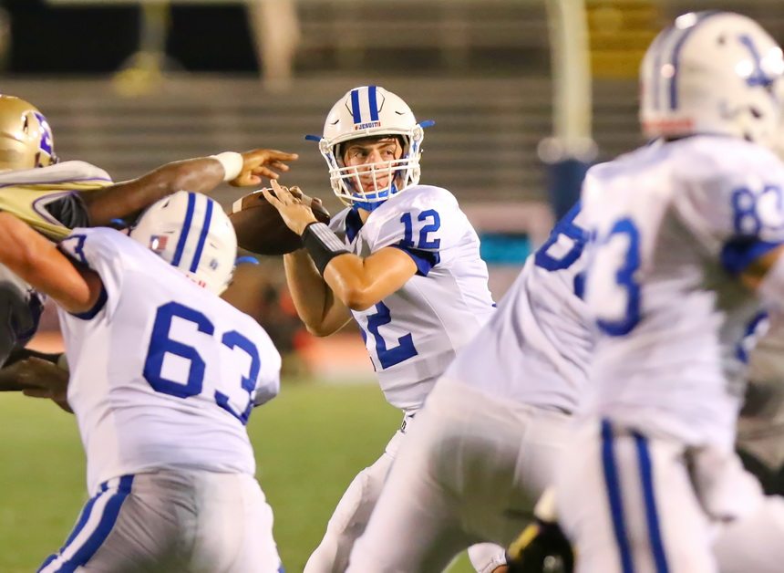 The Purple Knights recorded eight sacks in their season opening win over McDonough. St. Aug’s best pass rusher is Tulane commitment Juan Monjarres.