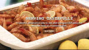 Foil pans are flimsy, not attractive and hard to transport! I invented serving container for foil pans. It gives the look of a casserole dish, but made out of plastic. The handles don’t get like a casserole dish when transporting your hot dish and the snap on lid can be inverted to use as a bowl when serving your favorite dip. No more leaving your casserole dish behind, remove the foil pan from Foil Decor for your guest to enjoy and take your container home or leave as a gift!