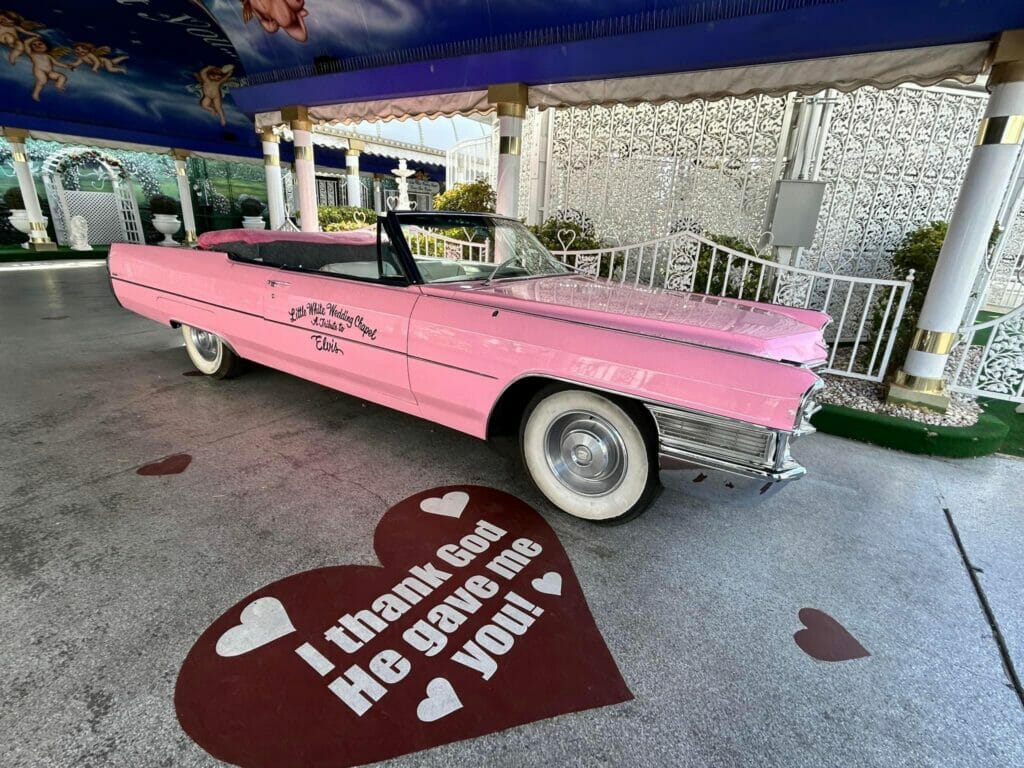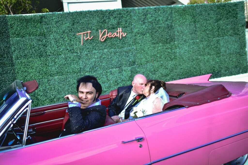 Elvis & pink Cadillac wedding credit Viva Las Vegas Weddings