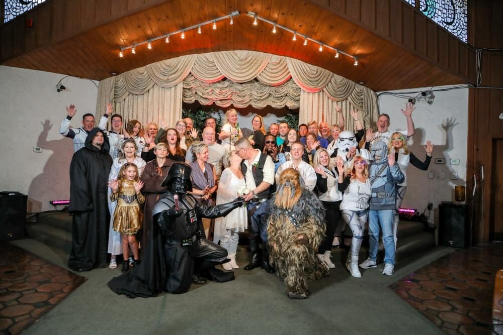 Beyond Elvis, any character-themed wedding is a possibility, including Star Wars, as well as wedding officiants like Alice Cooper, Freddy Krueger, and Chucky.