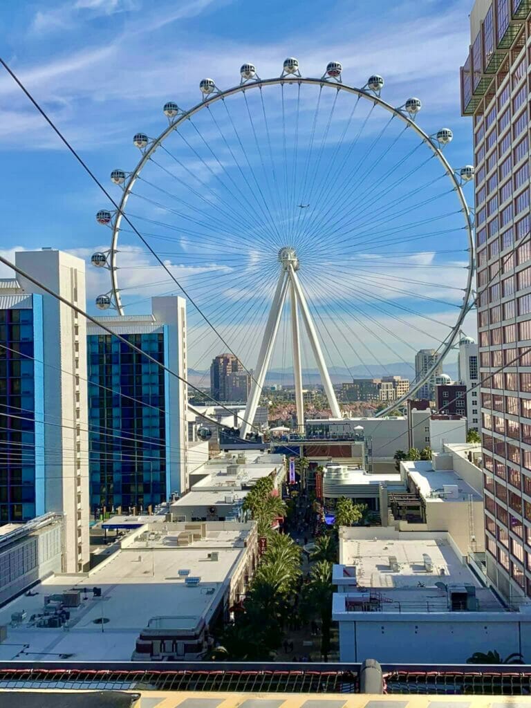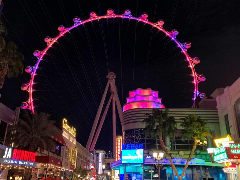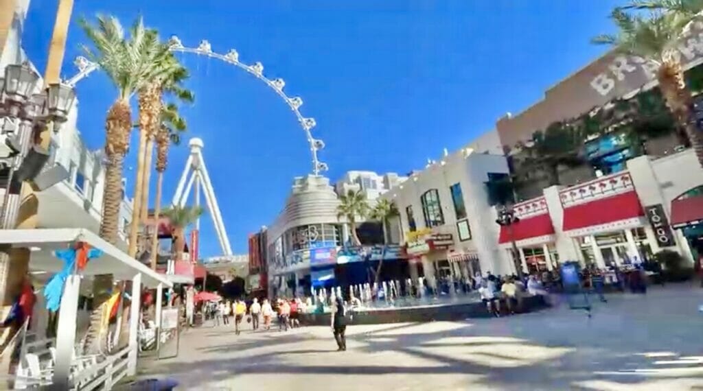 One outdoor area that we really enjoy is the LINQ Promenade. The LINQ Promenade is located between LINQ Hotel & Casino and Flamingo Hotel & Casino and is a Vegas must. This walkable area begins at Las Vegas Blvd and ends at the High Roller Observation Wheel.