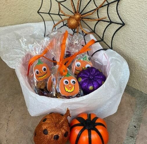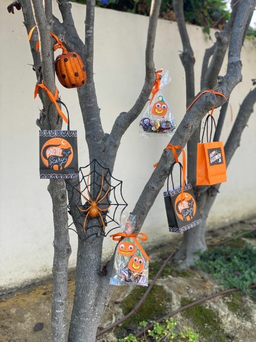Make goodie bags to alleviate kids reaching into a candy bowl or hang the bags on a tree, in a mailbox or a fence for families to grab.
