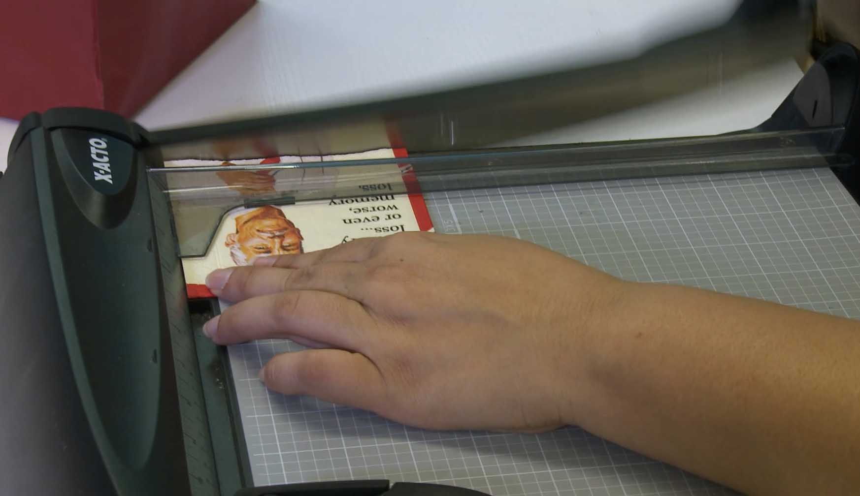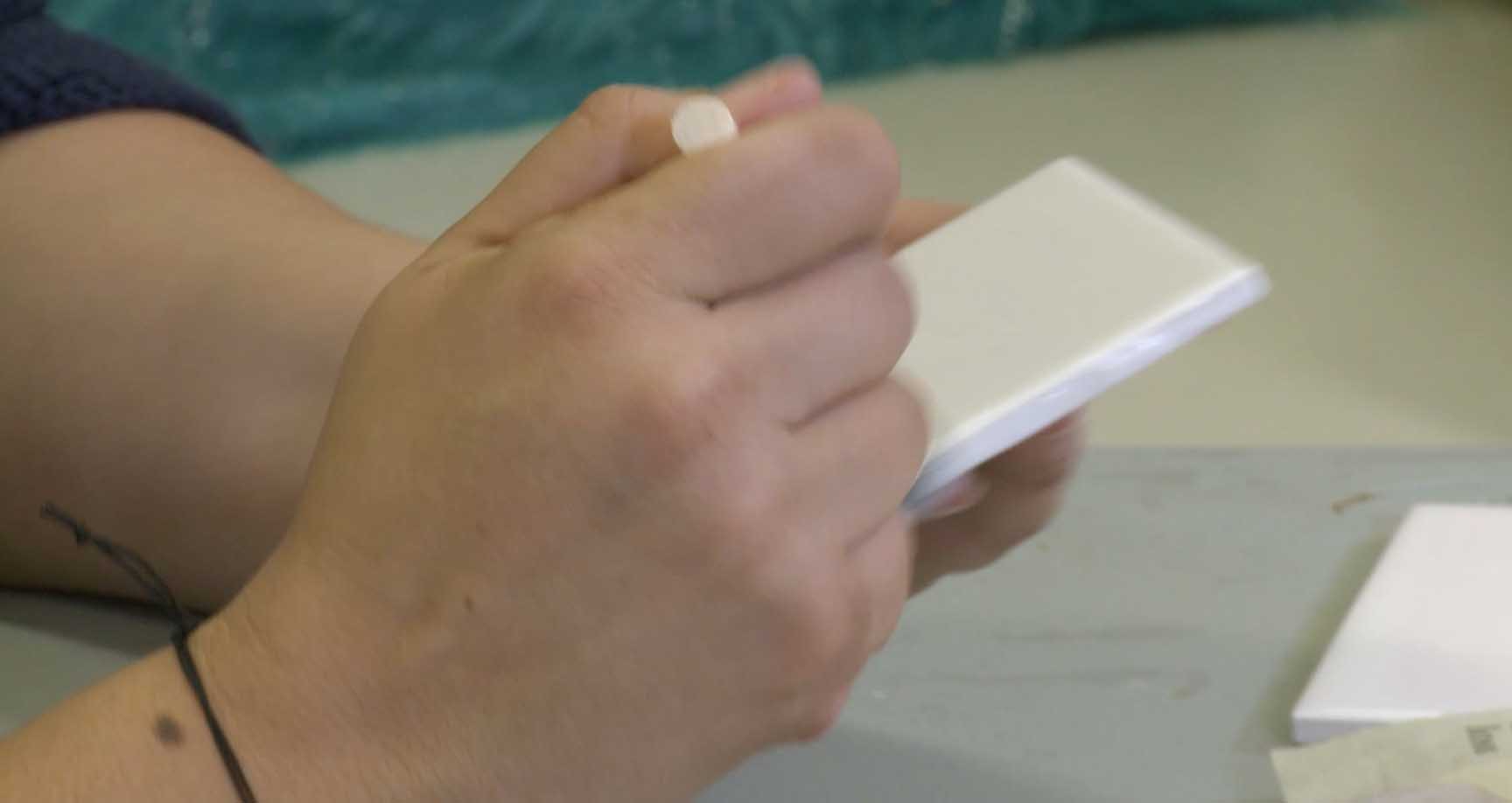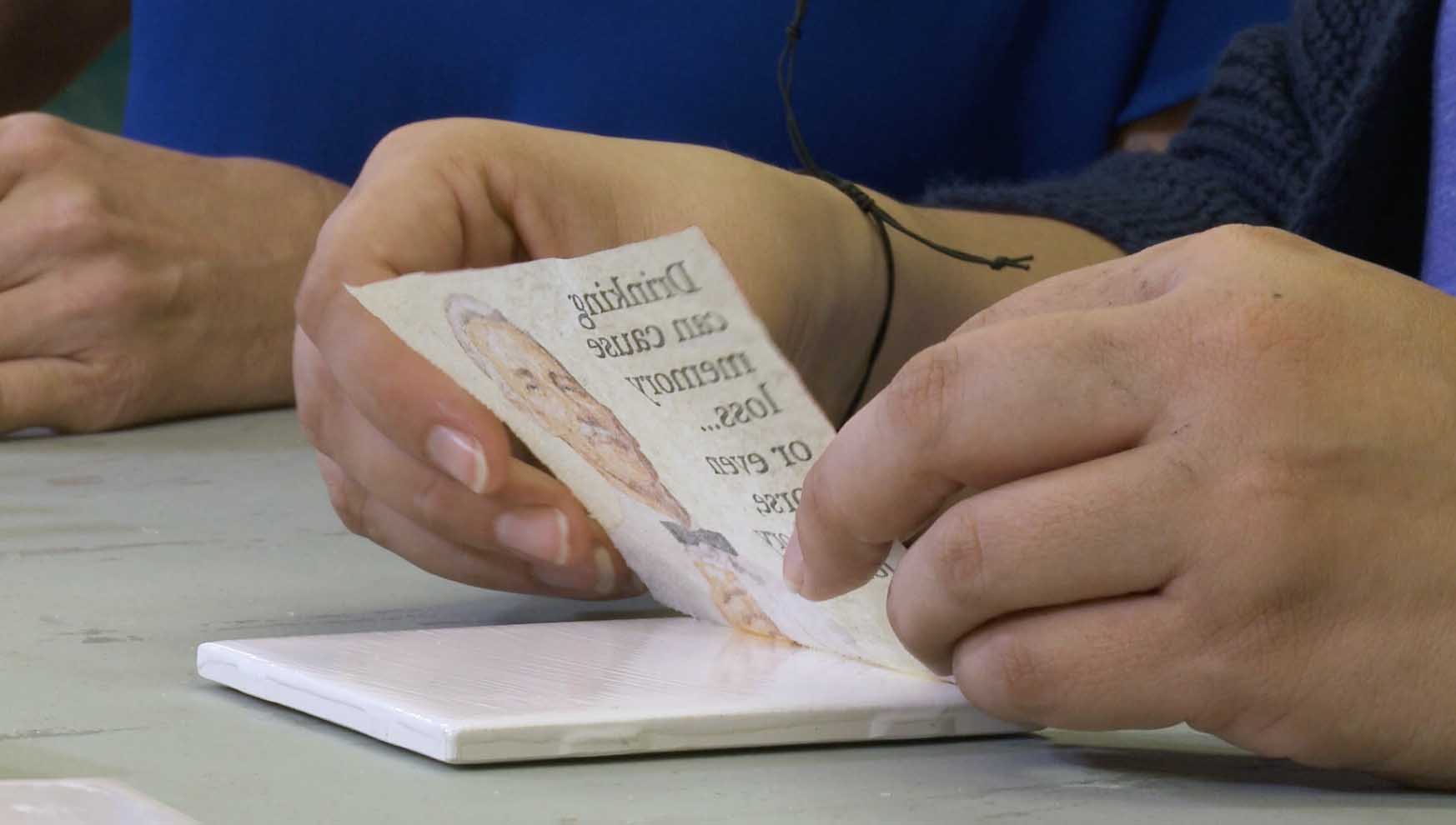 Cut napkin to the same size as the ceramic tile.