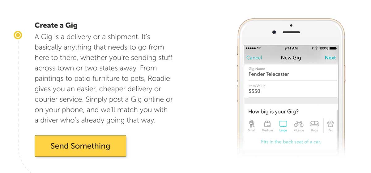 First, you post what they call a “gig” online or on your phone, and then Roadie will match you with a driver who’s already going that way.