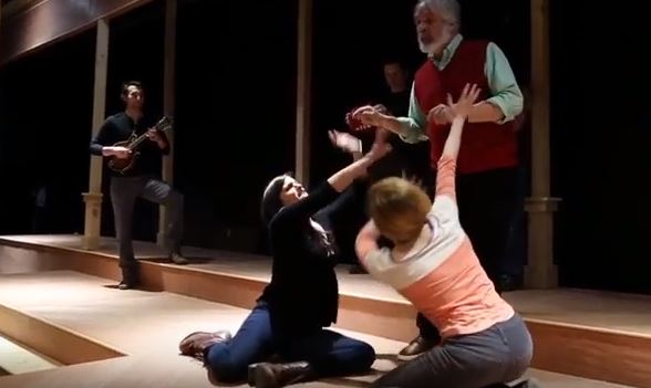 Now we were intrigued, so we sent a camera to Gamm’s “The Winter’s Tale” rehearsal (above) to talk with director Fred Sullivan, Jr and Music and Assistant Director Milly Massey and to see and hear the music of Shakespeare’s “The Winter’s Tale” on its merry way to the Gamm’s stage.