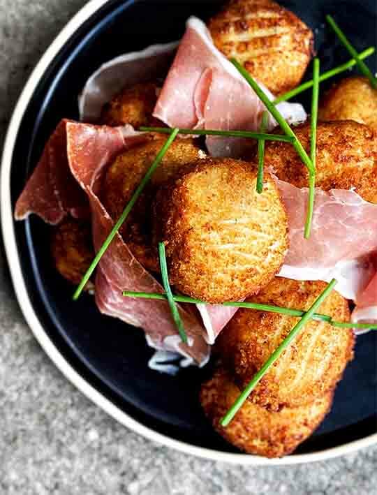 Crispy, cheesy tots that are laced with the salted, cured ham. Daniele Inc, located in Pascoag Rhode Island, is a world-renowned charcuterie producer and their prosciutto is the crown jewel of their repertoire. Its readily available at your local grocery store and easy to find online.