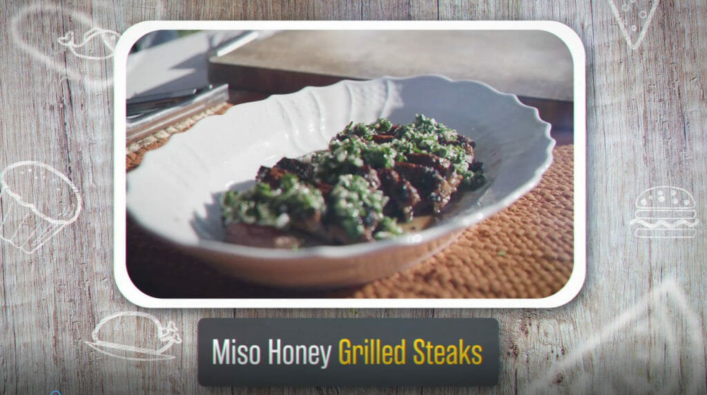 Absolutely perfect for any time of year, get this simple recipe for miso honey grilled sirloin steaks with a ginger chimichurri sauce.