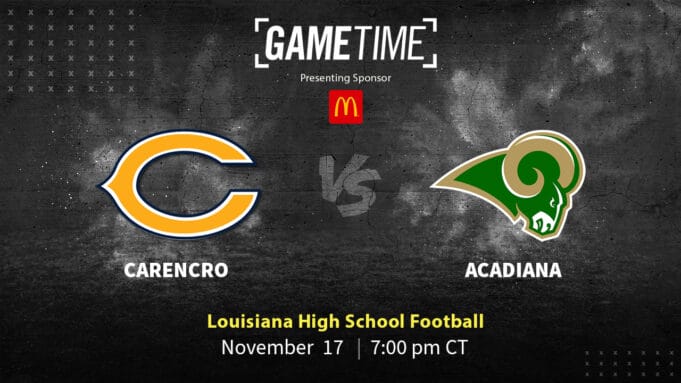GameTime High School football: Carencro Bears vs Acadiana Rams, regional playoffs. Watch it on Cox Channel 4, Cox Contour TV or free live stream on watch.yurview.com.