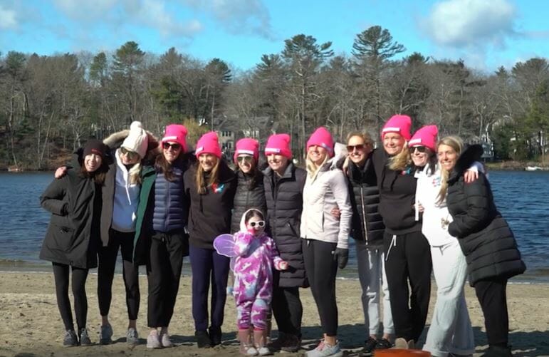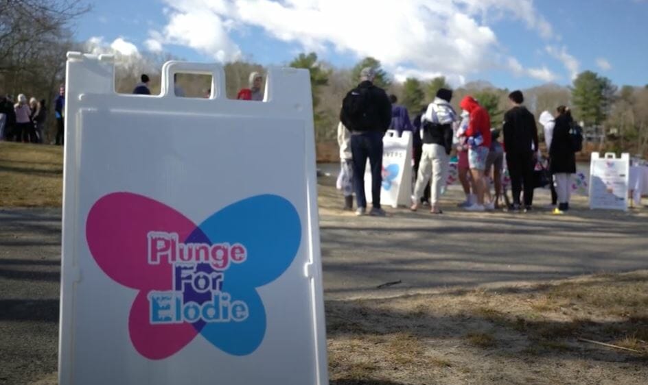 It’s the 6th Annual Plunge in Wellesley, Massachusetts, where all proceeds benefit the EB Research Partnership. EB (Epidermolysis Bullosa) is a devastating genetic skin disorder that affects children from birth. The Plunge for Elodie was created by 10 childhood friends of Elodie’s mom, Emily Kubik. Elodie was born in 2016 with a severe form of EB, facing a life expectancy of just 30 years.