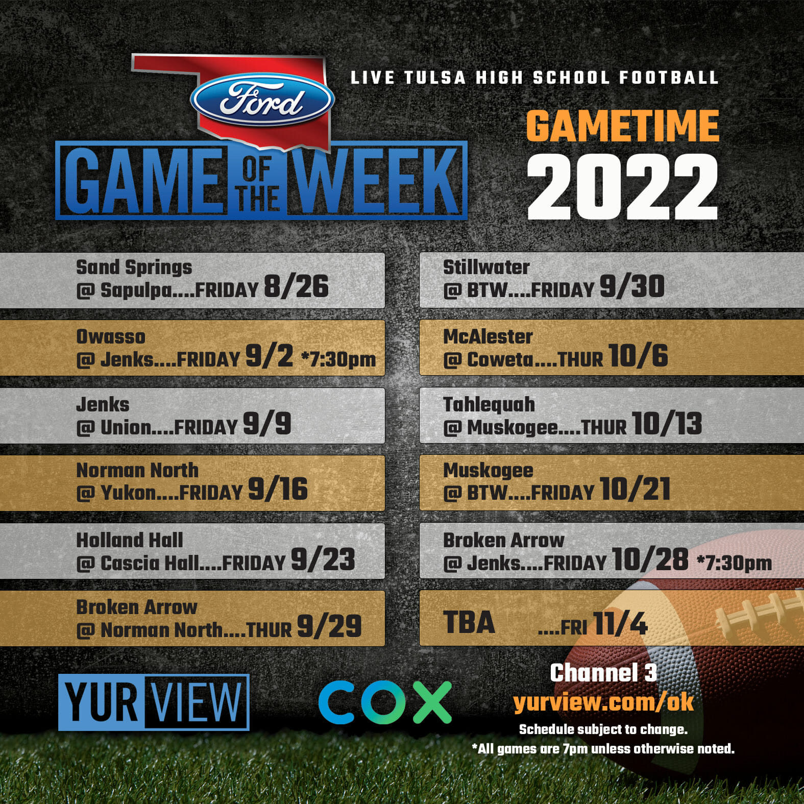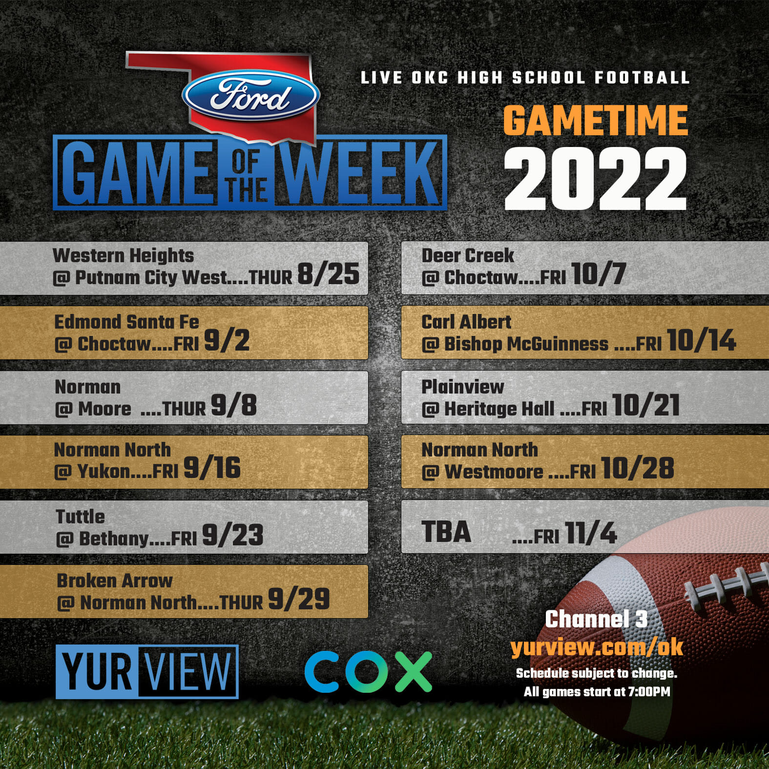 Read More: 2022 Oklahoma Ford Game of the Week Football Schedule