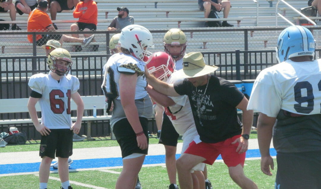 “There’s a wide variety of skill levels,” stated Choctaw defensive coordinator Brad Clark, who coordinated this year’s event. “We’re really working on player improvement and player development, because at this level, so much of line play is technical on both sides of the ball.”