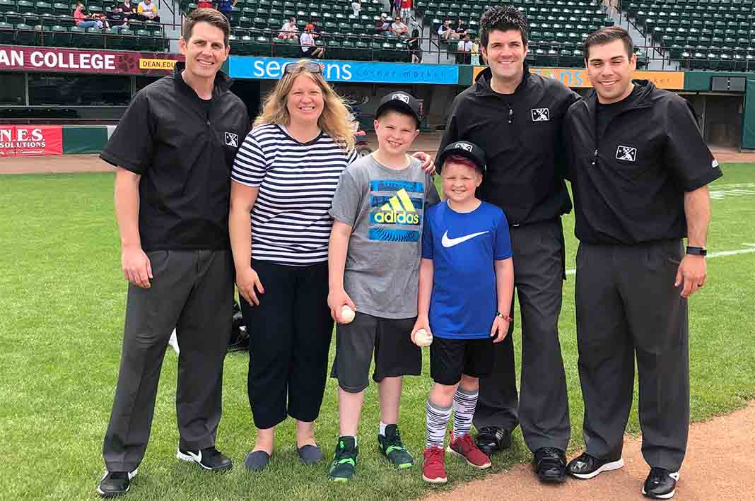 The three-person umpiring crew working that afternoon’s Pawtucket-Syracuse contest hosted 10-year-old Noah, his older brother Ian, and their mother Heather. The get-together was arranged by the Tomorrow Fund, which supports kids battling cancer at Hasbro Children’s Hospital and their families, and UMPS CARE Charities, which is the official philanthropy of Major League Baseball umpires. This season marks the first time that all Triple-A Minor League Baseball umpires (International League and Pacific League) are participating, with all 30 Triple-A teams supporting this special cause.