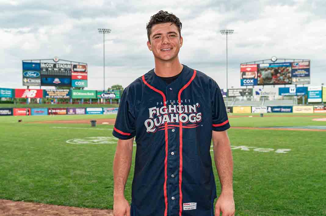 1B/3B Bobby Dalbec models jersey top, courtesy of PawSox