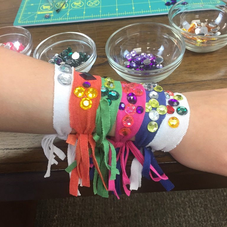 To show them all how much you care, try this new twist on an old favorite and the latest trend in friendship bracelets. It’s easy, inexpensive and eco-friendly because you get to repurpose an old t-shirt plus adding a few sparkles always makes people happy!