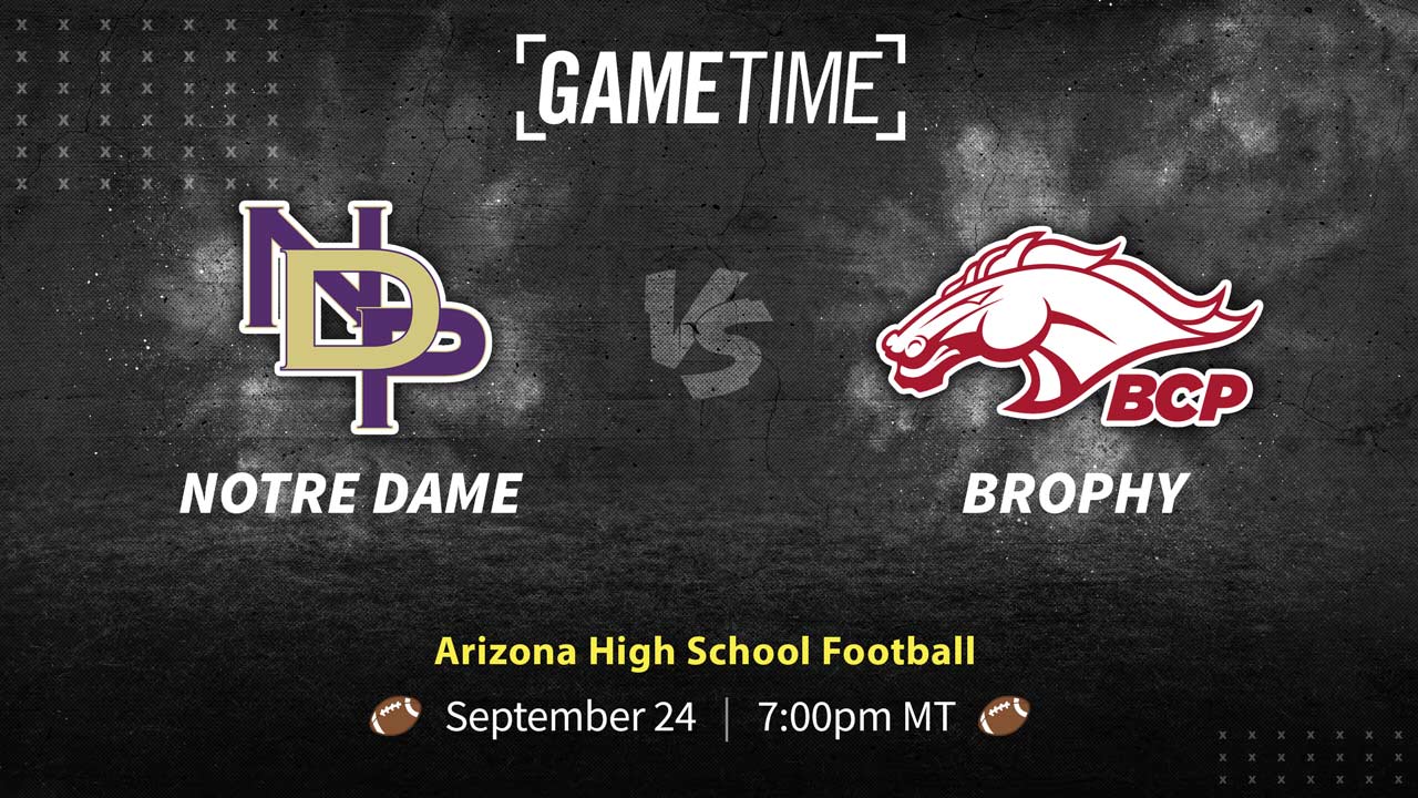 The Notre Dame Prep Saints (1-1) take on the Brophy Broncos (1-2) in our GameTime Arizona featured Arizona high school football matchup – Friday, Sept. 24 at 7:00 pm MT/9:00 pm CT.