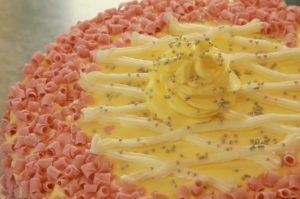 As a specialty shop they have fine pastries, white chiffon cake, old fashioned butter cream icing and cake charms (small squares of cake and icing mixed together and dipped in white or dark chocolate and decorated). They also have cupcakes ranging from regular flavors to gourmet cupcakes.