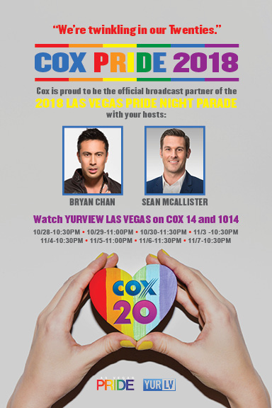 This year Cox is proud to support Southern Nevada’s GLBT community as the official broadcast partner of the PRIDE Night Parade. Catch all the fun and excitement of the parade with hosts Bryan Chan and Sean McAllister during one of many rebroadcasts on YURVIEW LAS VEGAS on COX 14 and 1014.
