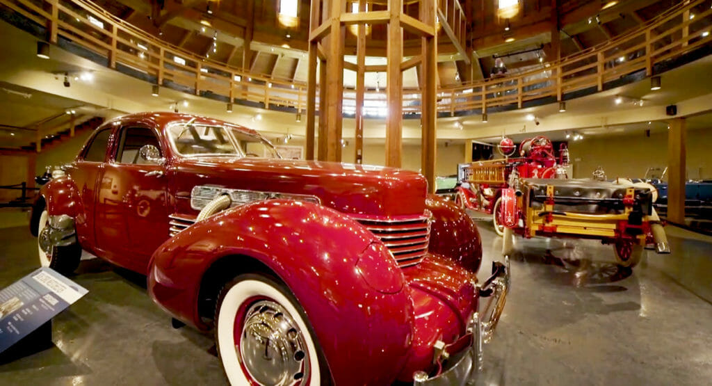 Jennifer 02:49 – Heritage has 41 cars in its collection. We can house them all here in our auto museum, but only about half of them can be on display at any one time. The other half are in our open collection storage area downstairs, where you can look through glass and and see all of the cars