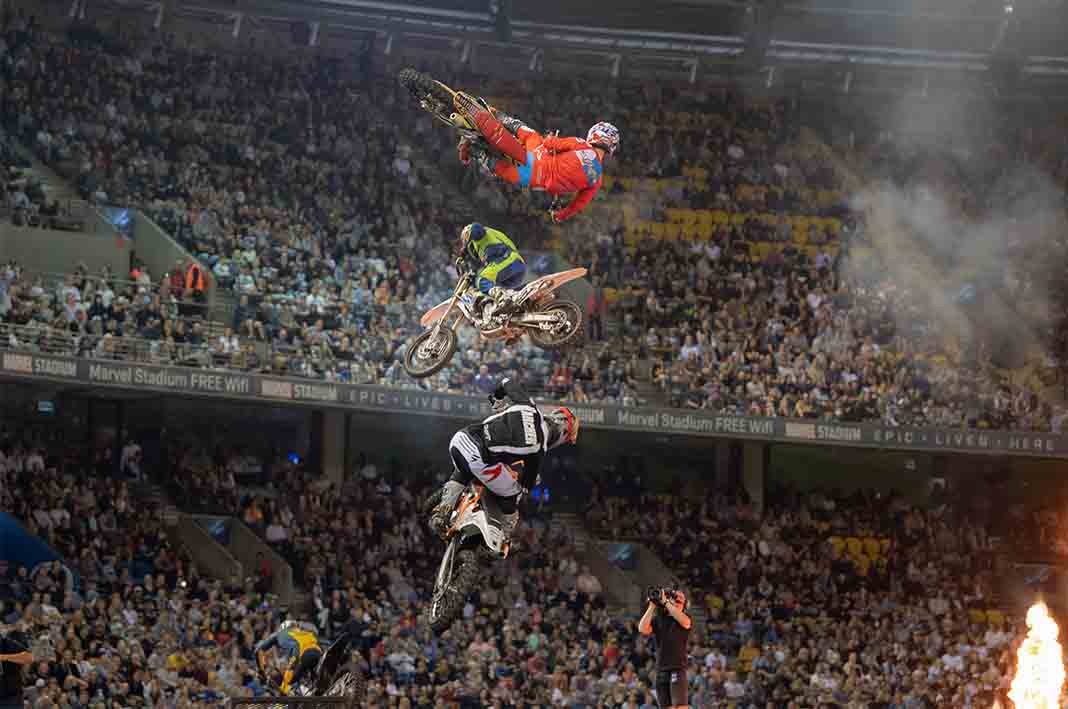 There’s the freestyle motocross on one side where FMX riders will be gliding through the air at 75 feet, and on the other side, a Giganta ramp that propels BMX riders five stories high.
