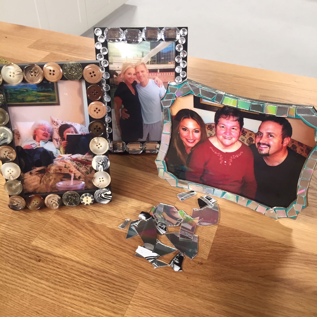 Those sleepy frames can get vibrant with the addition of buttons or gems added around the edges, or for a more contemporary look glue on some broken CDs.