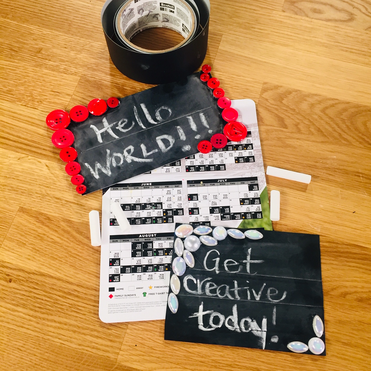 The refrigerator magnet with your favorite sports team’s schedule on it can be repurposed into a chalkboard magnet. Stick on chalkboard tape or fabric, glue on some bling and slap it on the fridge. Now everyone can write a quick note!